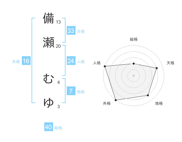 備瀬 むゆさんの総格は40画の2点!