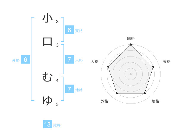 小口 むゆさんの総格は13画の5点!