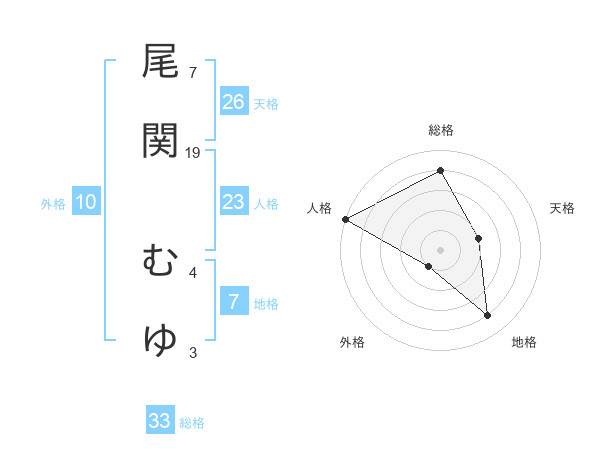 尾関 むゆさんの総格は33画の4点!