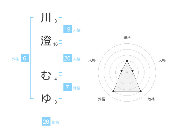 川澄 むゆさんを姓名の画数から五運を鑑定