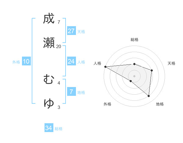 成瀬 むゆさんの総格は34画の2点!