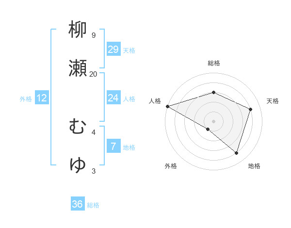 柳瀬 むゆさんを姓名の画数から五運を鑑定