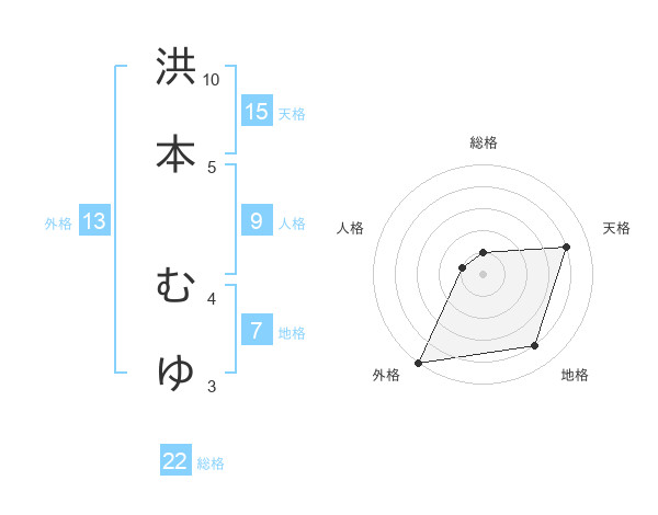 洪本 むゆさんを姓名の画数から五運を鑑定