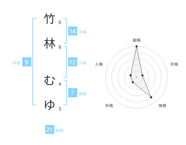 竹林 むゆさんの総格は21画の5点!