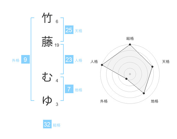 竹藤 むゆさんの総格は32画の5点!