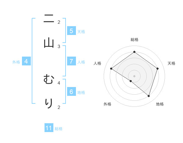 二山 むりさんの総格は11画の4点!