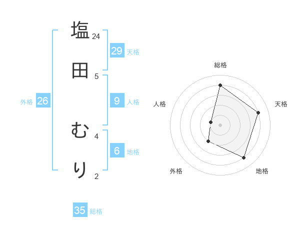 塩田 むりさんの総格は35画の4点!