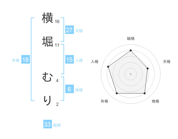 横堀 むりさんの総格は33画の4点!