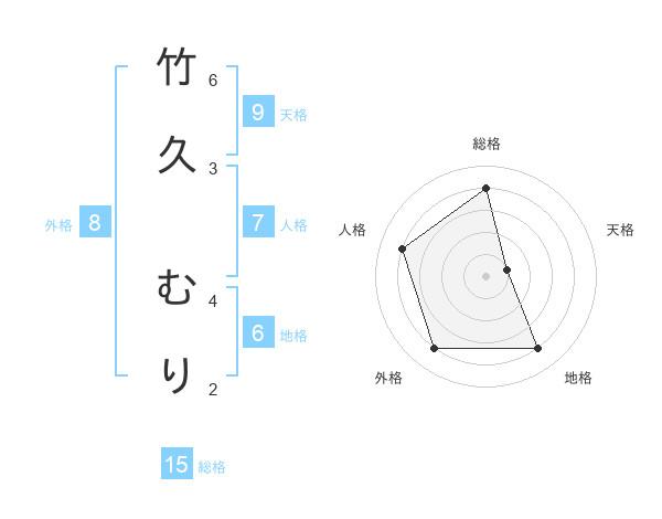 竹久 むりさんの総格は15画の4点!