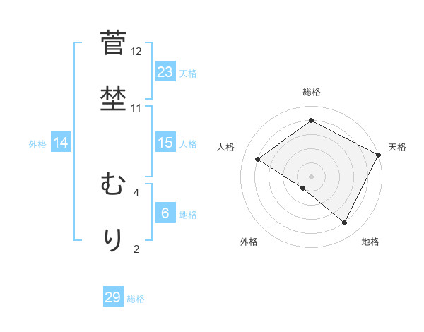 菅埜 むりさんの天格は23画の5点!