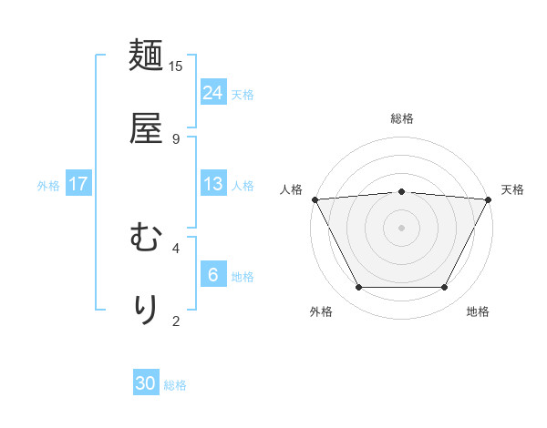 麺屋 むりさんの人格は13画の5点!