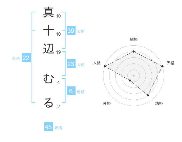 真十辺 むるさんの天格は39画の5点!