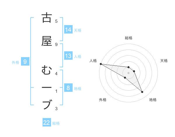 古屋 むーブさんを姓名の画数から五運を鑑定