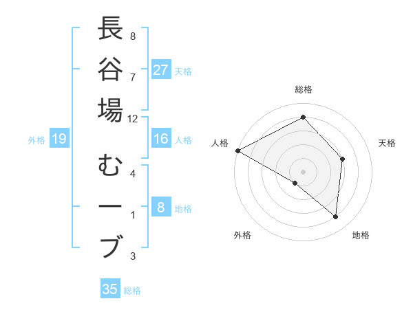 長谷場 むーブさんを姓名の画数から五運を鑑定