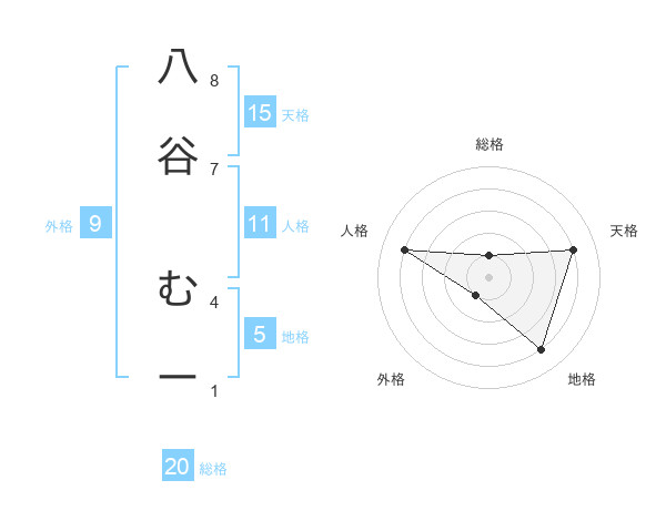 八谷 むーさんの総格は20画の1点!