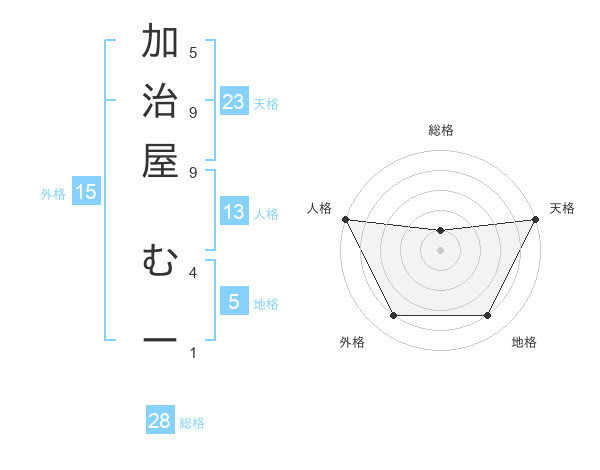 加治屋 むーさんの天格は23画の5点