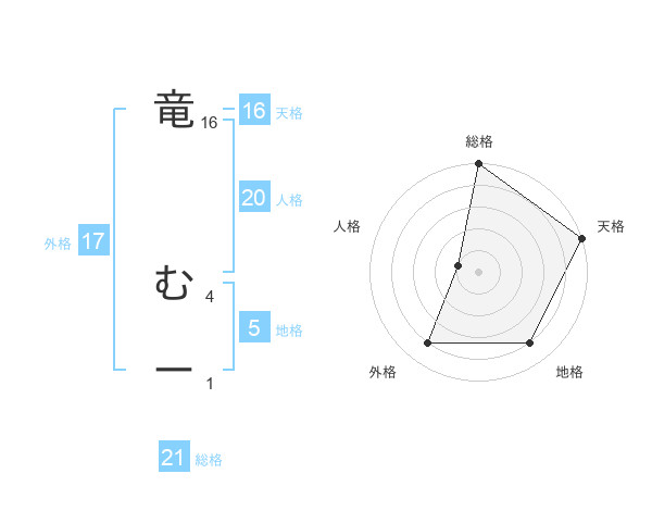 竜 むーさんの総格は21画の5点!