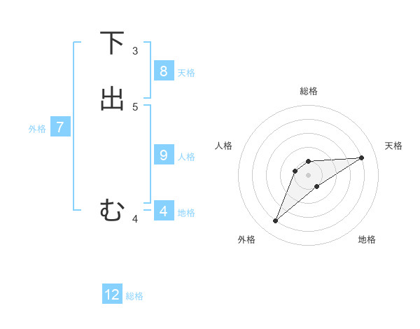 下出 むさんの天格は8画の4点!