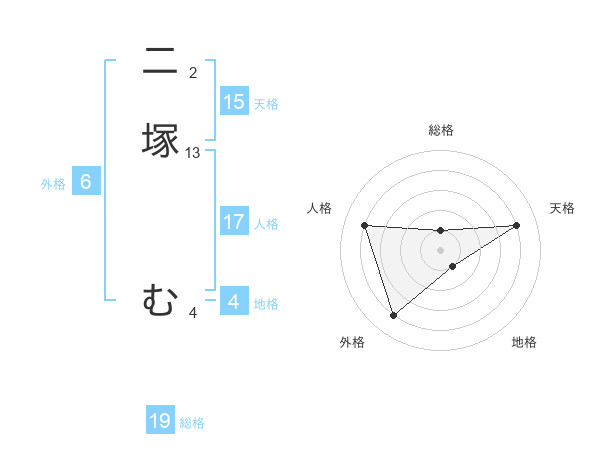 二塚 むさんの天格は15画の4点!