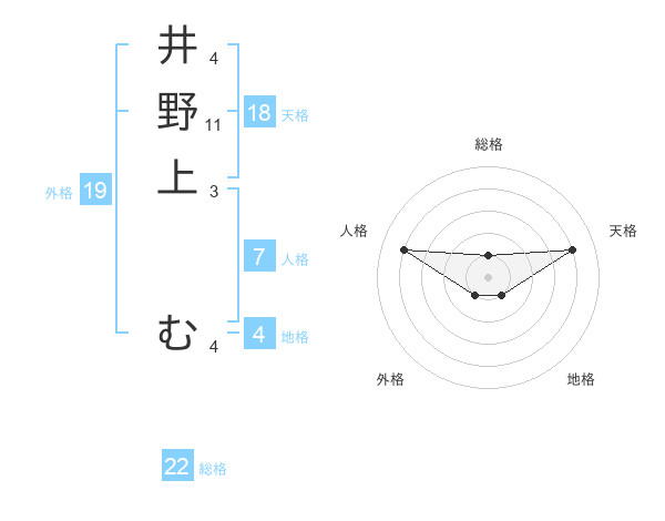 井野上 むさんの総格は22画の1点!