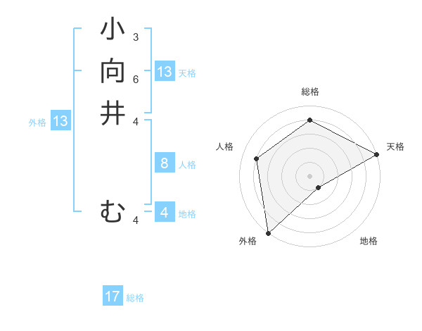 小向井 むさんの外格は13画の5点!