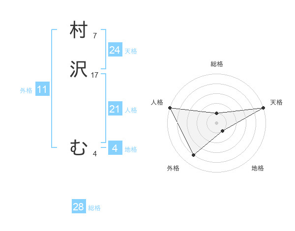村沢 むさんの天格は24画の5点!