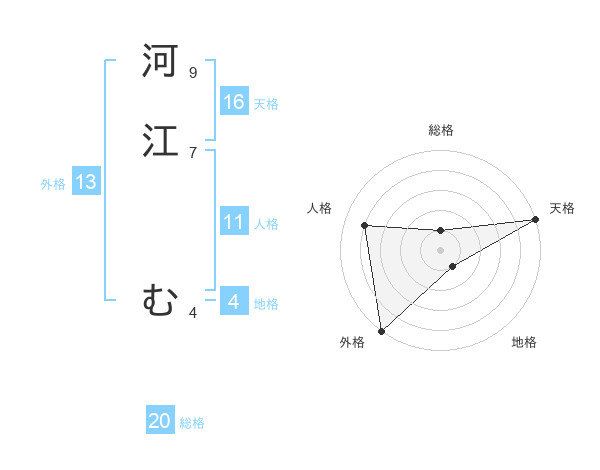 河江 むさんの天格は16画の5点!