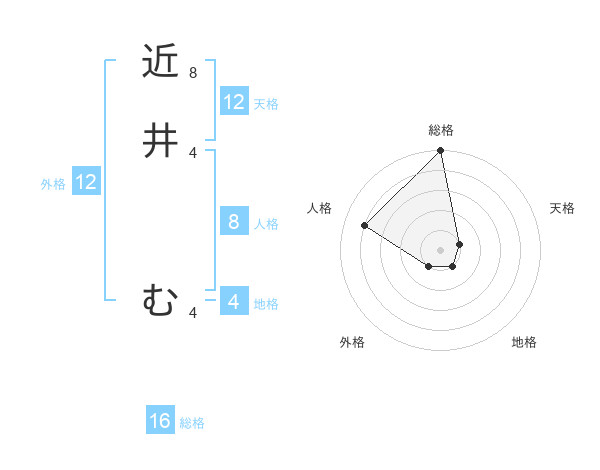 近井 むさんの外格は12画の1点!