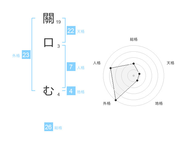 家系が持つ宿命的な運勢を表します。祖先から受け継いだ苗字ですので自分の力が及びません。家柄を象徴します。