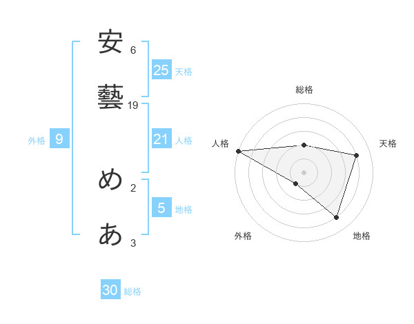 安藝 めあさんの総格は30画の2点!