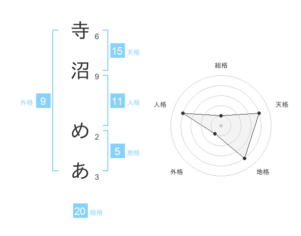 寺沼 めあさんの総格は20画の1点!