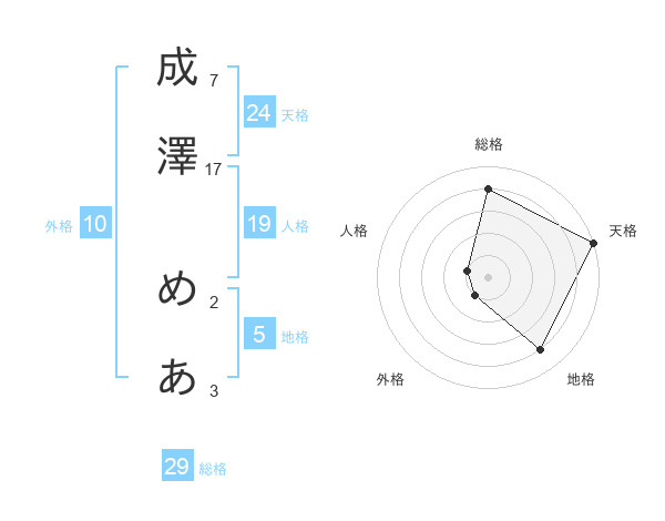 成澤 めあさんの天格は24画の5点!