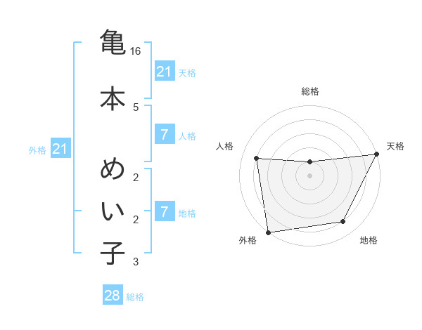 亀本 めい子さんの天格は21画の5点!