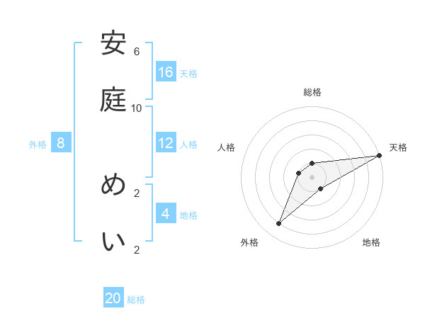 安庭 めいさんの天格は16画の5点!