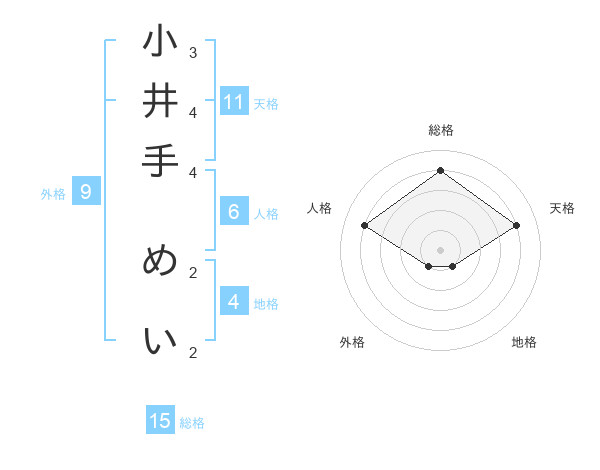 小井手 めいさんの総格は15画の4点!