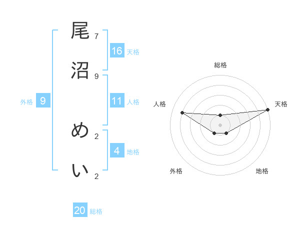 尾沼 めいさんを姓名の画数から五運を鑑定