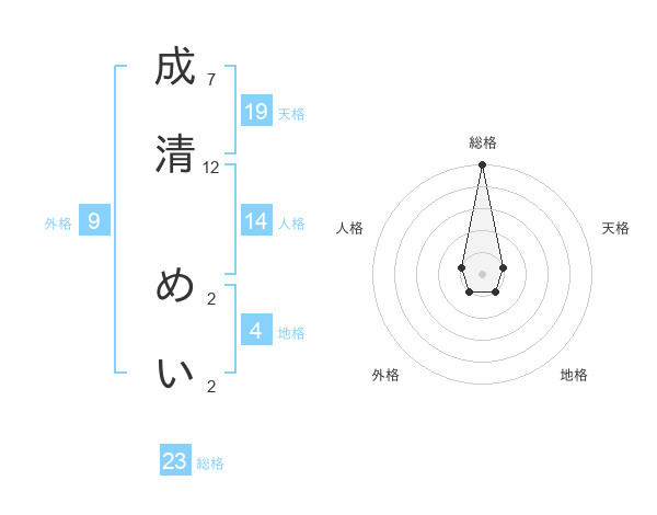 成清 めいさんの天格は19画の1点!