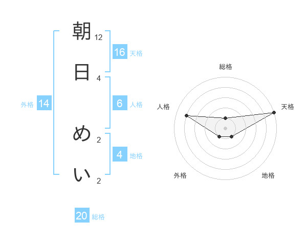 朝日 めいさんの天格は16画の5点!