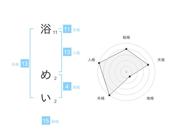 浴 めいさんの外格は13画の5点!