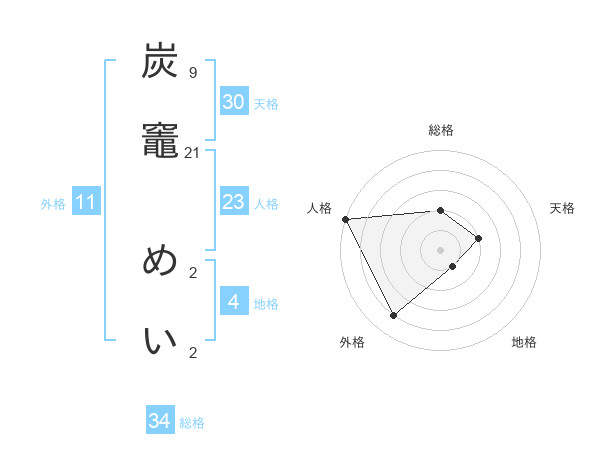 炭竈 めいさんの外格は11画の4点!