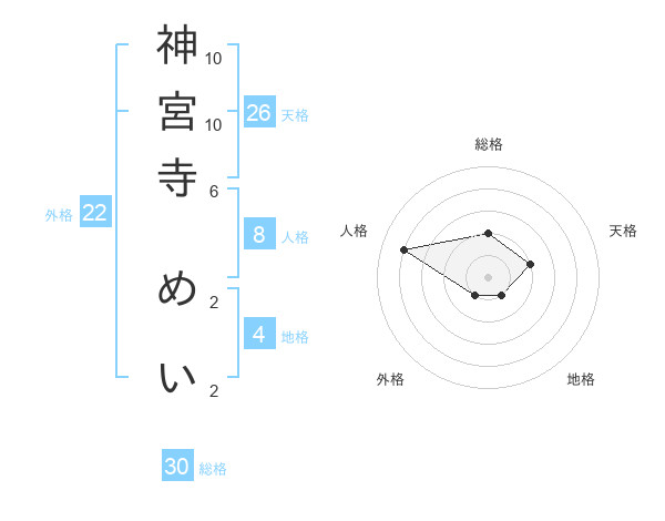 神宮寺 めいさんを姓名の画数から五運を鑑定