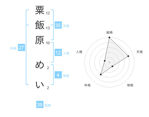 粟飯原 めいさんの総格は39画の5点!