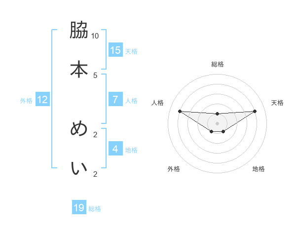 脇本 めいさんの総格は19画の1点!