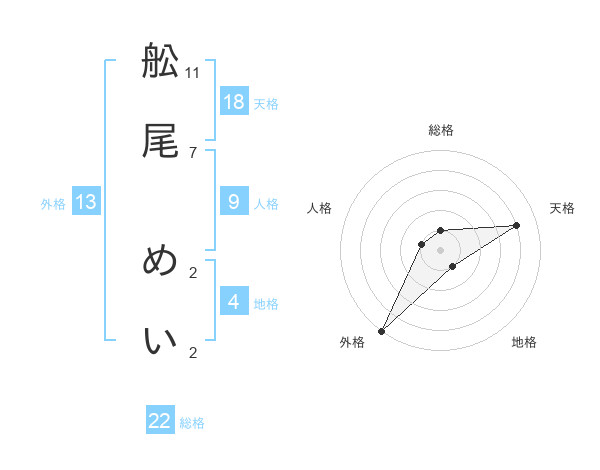 舩尾 めいさんを姓名の画数から五運を鑑定