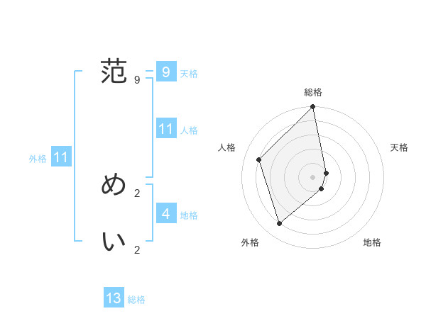 范 めいさんの総格は13画の5点!