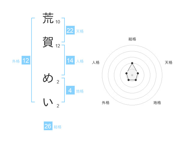 荒賀 めいさんを姓名の画数から五運を鑑定
