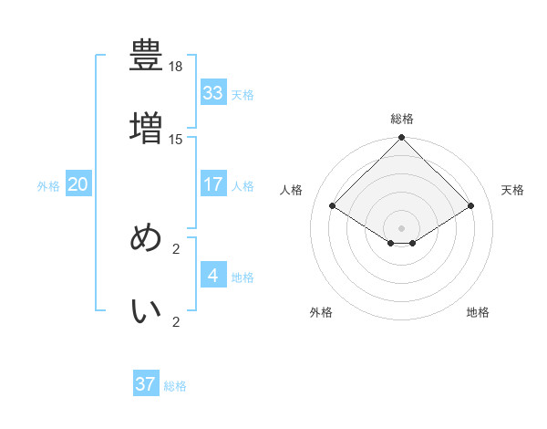 豊増 めいさんの総格は37画の5点!