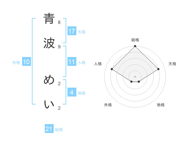 青波 めいさんの天格は17画の4点!