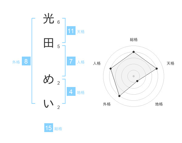 光田 めいさんの総格は15画の4点!