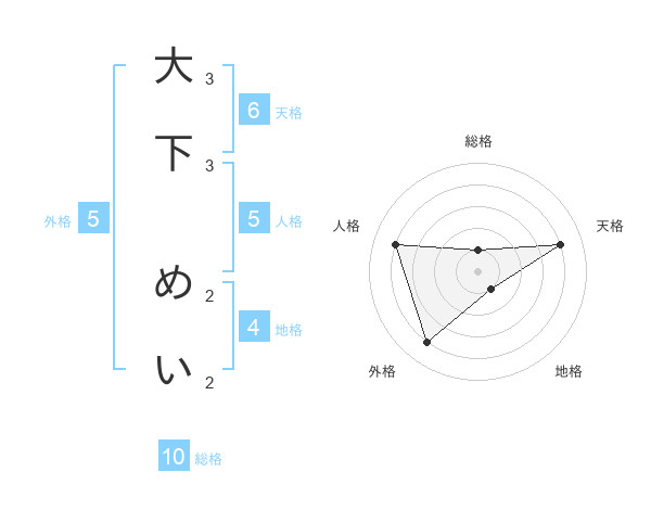 大下 めいさんの総格は10画の1点